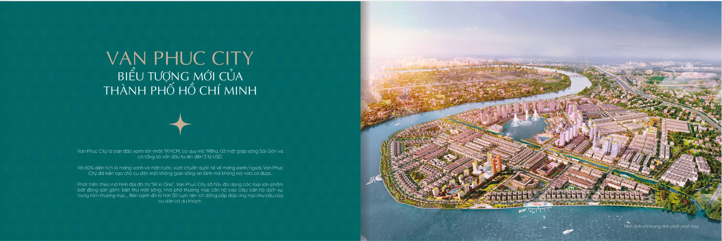 Khu đô thị Vạn Phúc City với quy mô 198 ha, được biết đến như một thành phố thu nhỏ phía Đông TP.HCM. Là 1 trong 3 bán đảo bên sông Sài Gòn, với tổng mức đầu tư 3 tỷ USD