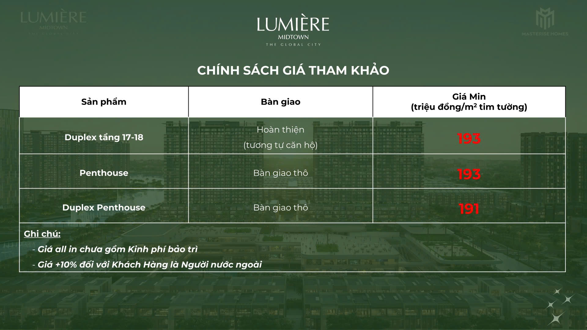 CHÍNH SÁCH BÁN HÀNG LUMIERE MIDTOWN THE GLOBAL CITY